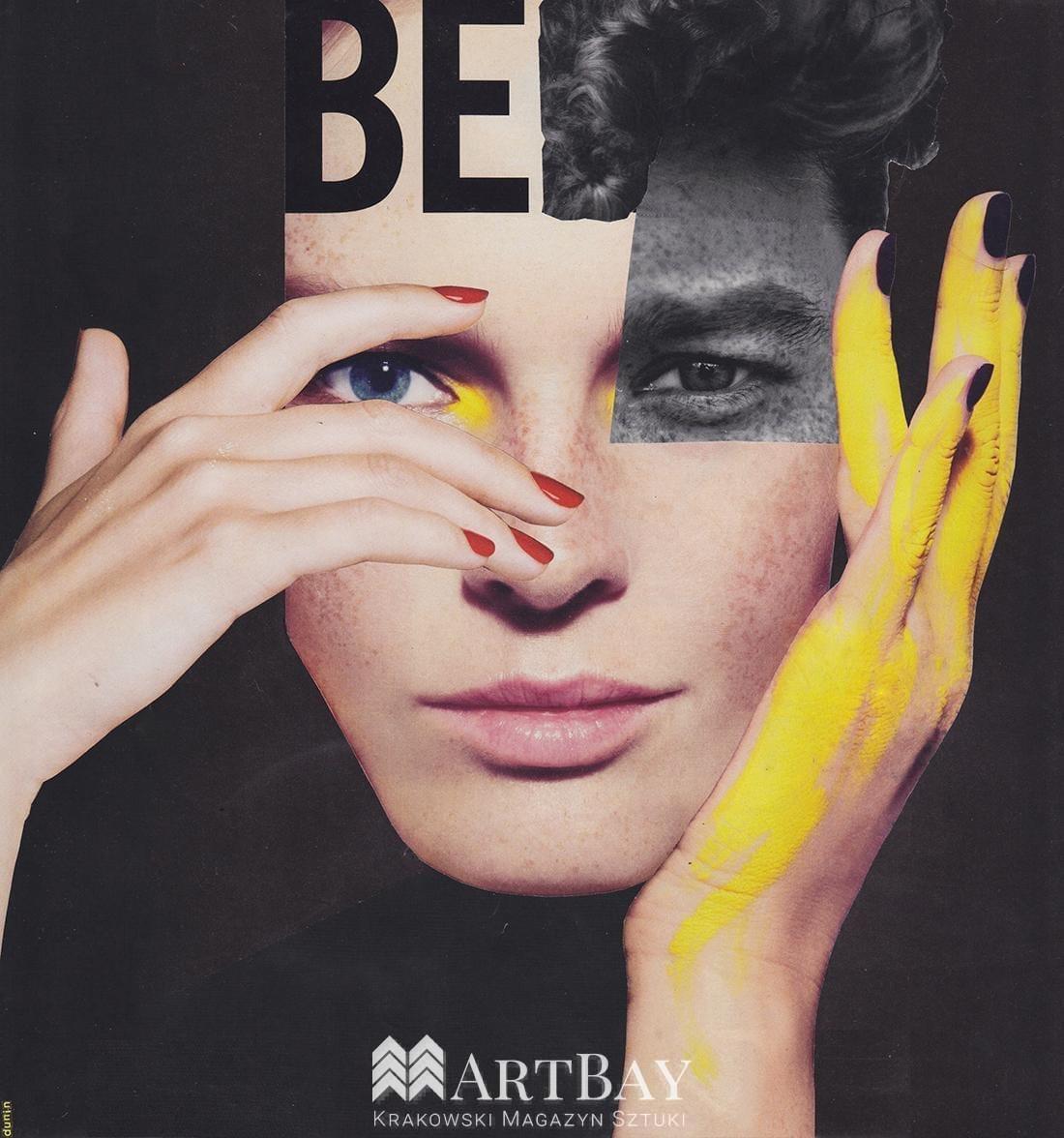 Praca wykonana technika kolażu, przedstawia portret kobiecy.