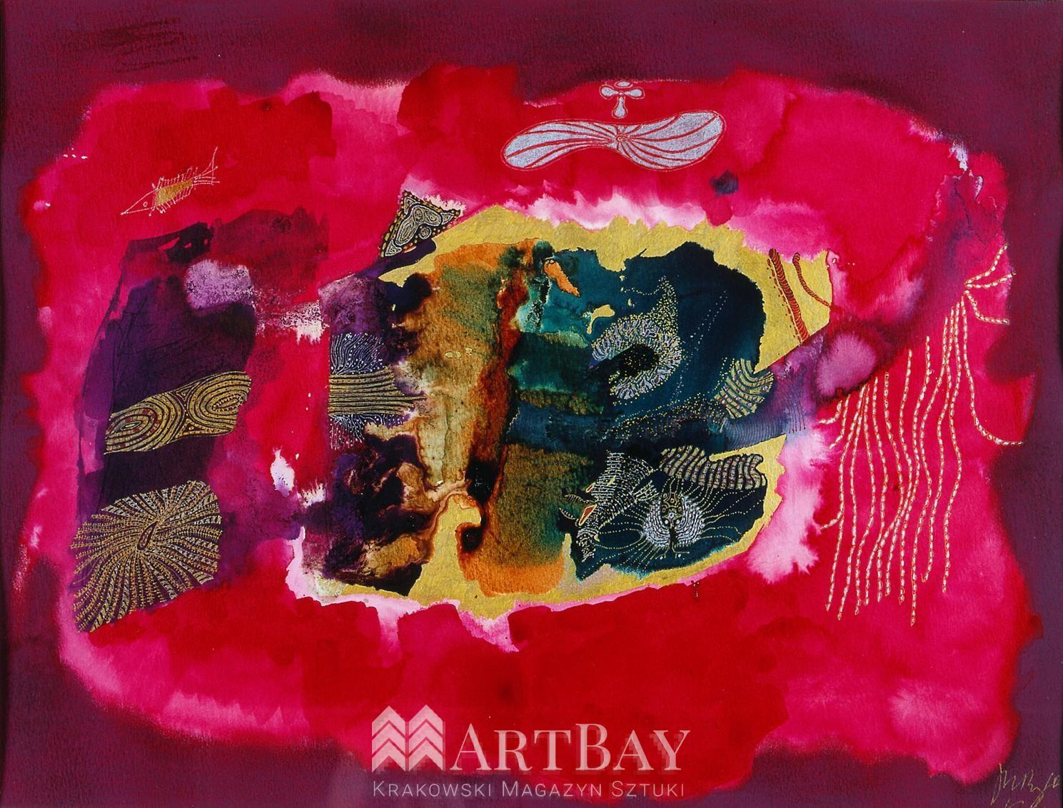 Grafika z cyklu „Wędrówki po Morzu Czerwonym”, wykonana unikalną techniką żel-art. Niezwykle detaliczna i dekoracyjna praca będzie piękną ozdobą każdego wnętrza. Praca dostępna jest w trzech wielkościach: S 21×29 cm (1800 zł), A 38×55 cm (3200 zł) oraz M 45×67 cm (3800 zł). Grafika jest wykonywana ręcznie przez autora po zamówieniu, w związku z czym czas oczekiwania jest każdorazowo ustalany z artystą.
