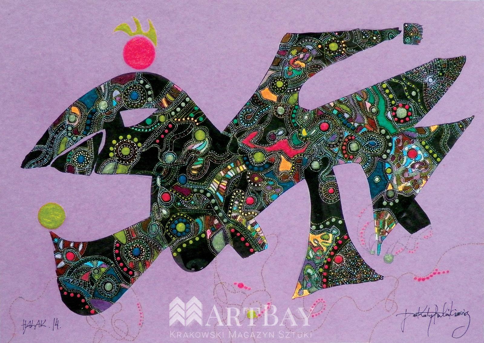 Grafika z cyklu „Sensy, Byty, Mary”, wykonana unikalną techniką żel-art. Niezwykle detaliczna i dekoracyjna praca będzie piękną ozdobą każdego wnętrza. Praca dostępna jest w trzech wielkościach: S 21×29 cm (1800 zł), A 38×55 cm (3200 zł) oraz M 45×67 cm (3800 zł). Grafika jest wykonywana ręcznie przez autora po zamówieniu, w związku z czym czas oczekiwania jest każdorazowo ustalany z artystą.