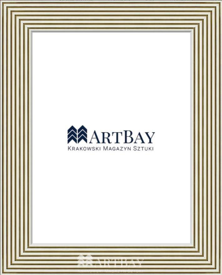 Rama drewniana w kolorze kremowym ze złotymi detalami, wykonana z drewna sosnowego. Profil ramy frezowany w nowoczesnym stylu. Szerokość ramy 57 mm, wysokość 20 mm. Rama przeznaczona do oprawy druków Fine-art na papierze. Do ramy można domówić szkło lub pleksi.