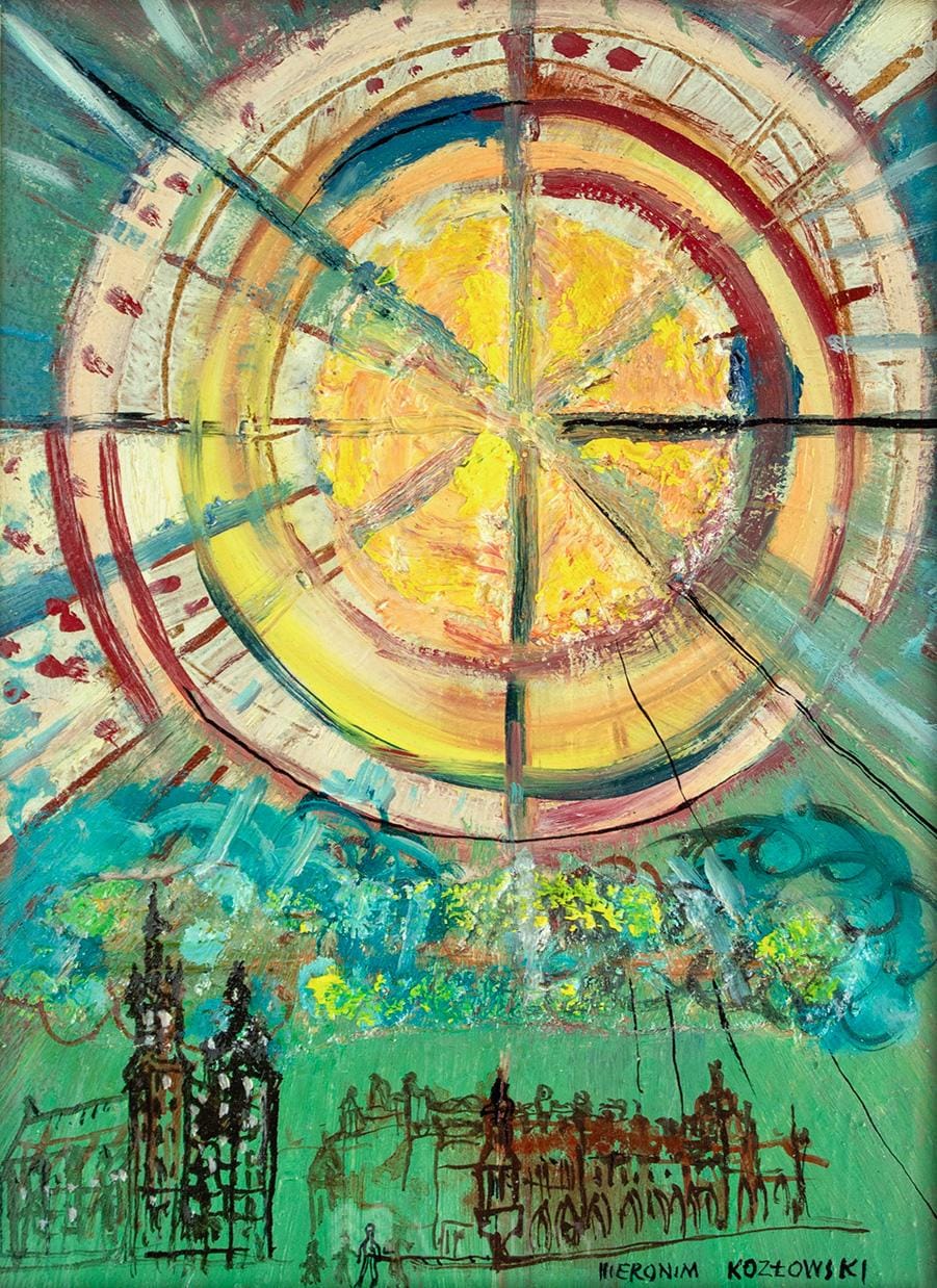 Powstały w 1963 roku obraz przedstawia panoramę Krakowa ze sztucznymi ogniami ponad miestem. Praca o ekspresyjnym charakterze, z widocznymi pociągnięciami pędzla oraz bogatą fakturą. Obraz ma kolekcjonerski charakter, pasuje do wnętrz w każdym stylu. Oryginał oprawiony w drewnianą ramę.