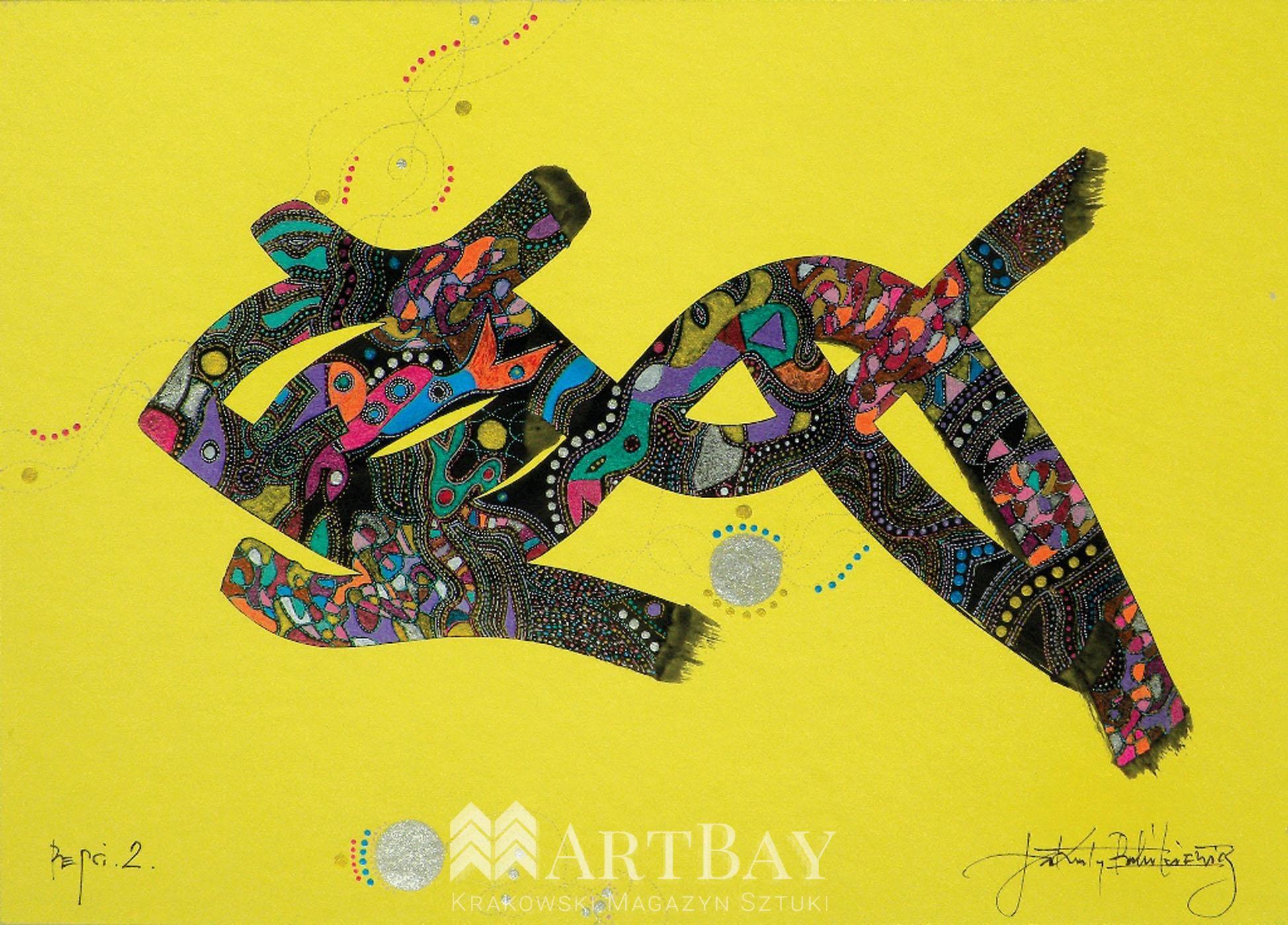 Grafika z cyklu „Sensy, Byty, Mary”, wykonana unikalną techniką żel-art. Niezwykle detaliczna i dekoracyjna praca będzie piękną ozdobą każdego wnętrza. Praca dostępna jest w trzech wielkościach: S 21×29 cm (1800 zł), A 38×55 cm (3200 zł) oraz M 45×67 cm (3800 zł). Grafika jest wykonywana ręcznie przez autora po zamówieniu, w związku z czym czas oczekiwania jest każdorazowo ustalany z artystą.