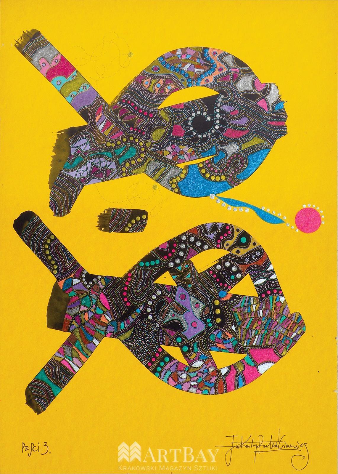 Grafika z cyklu „Sensy, Byty, Mary”, wykonana unikalną techniką żel-art. Niezwykle detaliczna i dekoracyjna praca będzie piękną ozdobą każdego wnętrza. Praca dostępna jest w trzech wielkościach: S 21×29 cm (1800 zł), A 38×55 cm (3200 zł) oraz M 45×67 cm (3800 zł). Grafika jest wykonywana ręcznie przez autora po zamówieniu, w związku z czym czas oczekiwania jest każdorazowo ustalany z artystą.