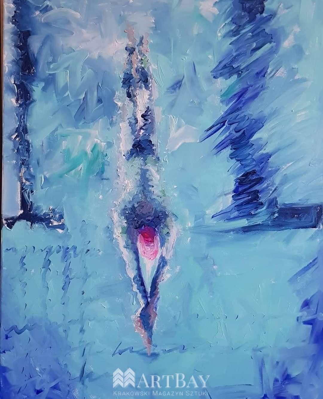 Wyjątkowy obraz przedstawiający pływaka. Obraz namalowany na podobraziu płóciennym, farbami akrylowymi. Obraz ma kolekcjonerski charakter, pasuje do każdego wnętrza – tradycyjnego, nowoczesnego, w szczególności do biura lub salonu albo sypialni.