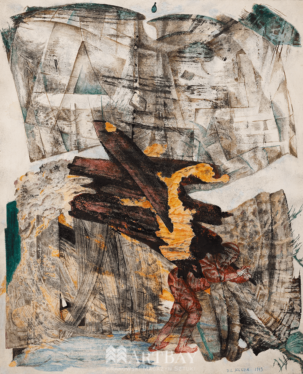 Abstrakcyjny obraz stworzony w Polsce w roku 1993. Obraz ma kolekcjonerski, dekoracyjny charakter, pasuje do każdego wnętrza – tradycyjnego, nowoczesnego, w szczególności do biura lub salonu.