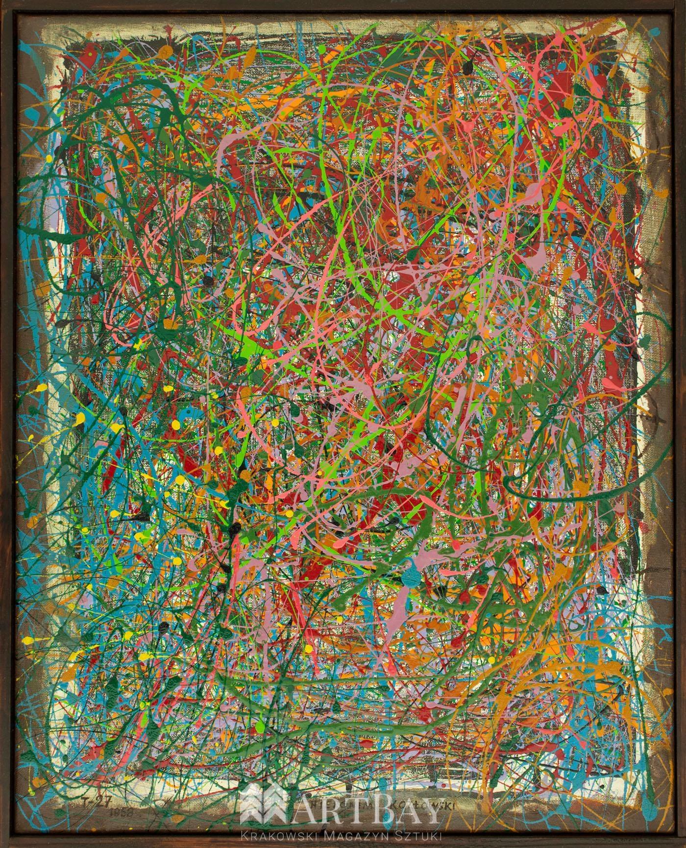 Ekspresjonizm – emocje na płótnie wykonana w 1958 roku w stylu taszyzmu. Artysta ekspresyjnie rozlewał farbę po płótnie tworząc niezwykle detaliczną i dekoracyjną zarazem formę. Praca oryginalna oprawiona jest w cienkie ramki w kolorze brązowym. Obraz ma kolekcjonerski charakter, pasuje do każdego wnętrza – tradycyjnego, nowoczesnego, w szczególności do biura lub salonu albo sypialni.
