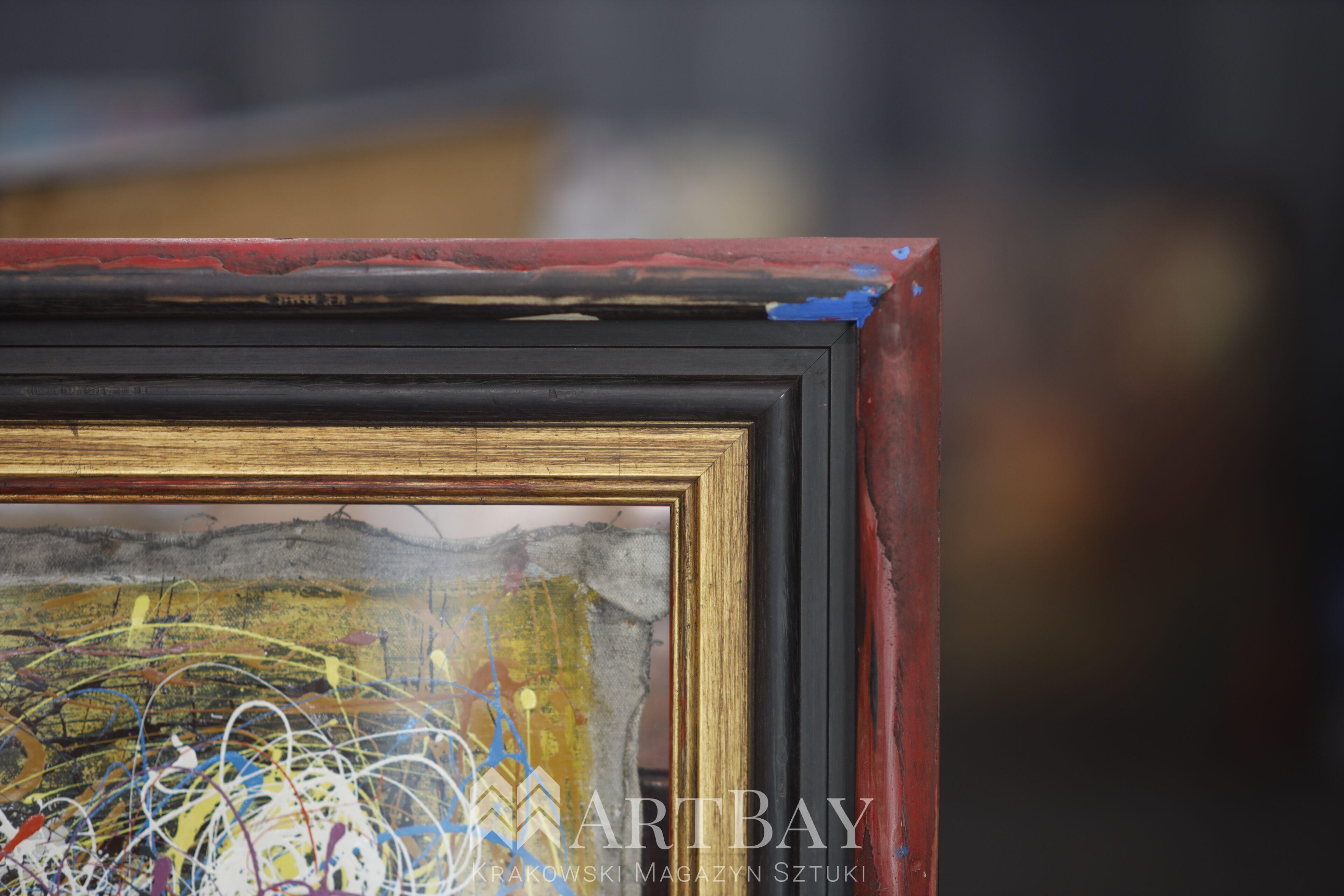 Taszyzm Ekspresjonizmu –„T-23” autorstwa Hieronima Kozłowskiego – olej na płótnie z 1960 roku, zachowany w oryginalnej formie, bez naciągnięcia na krosno. Dzieło zostało oprawione w autorską ramę wykonaną przez HERGON, z przeszkleniem, które tworzy z obrazem nierozerwalną całość. To wyjątkowy przykład sztuki taszystowskiej, łączący historię z nowoczesnym podejściem do ekspozycji. Idealny wybór dla kolekcjonerów i osób inwestujących w sztukę współczesną.
