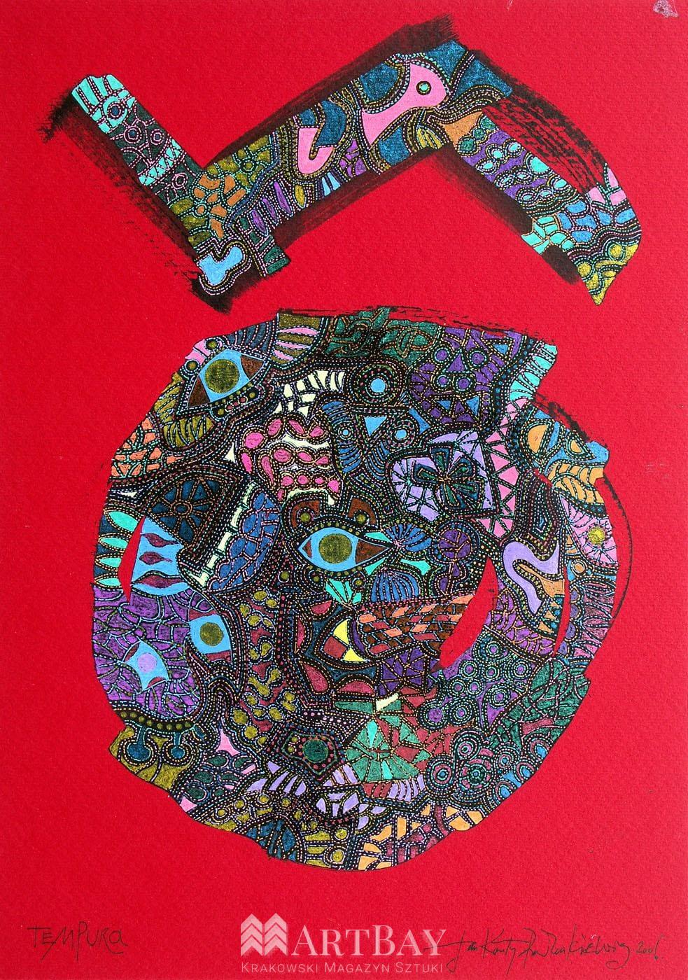 Grafika z cyklu „Sensy, Byty, Mary”, wykonana unikalną techniką żel-art. Niezwykle detaliczna i dekoracyjna praca będzie piękną ozdobą każdego wnętrza. Praca dostępna jest w trzech wielkościach: S 21×29 cm (1800 zł), A 38×55 cm (3200 zł) oraz M 45×67 cm (3800 zł). Grafika jest wykonywana ręcznie przez autora po zamówieniu, w związku z czym czas oczekiwania jest każdorazowo ustalany z artystą.