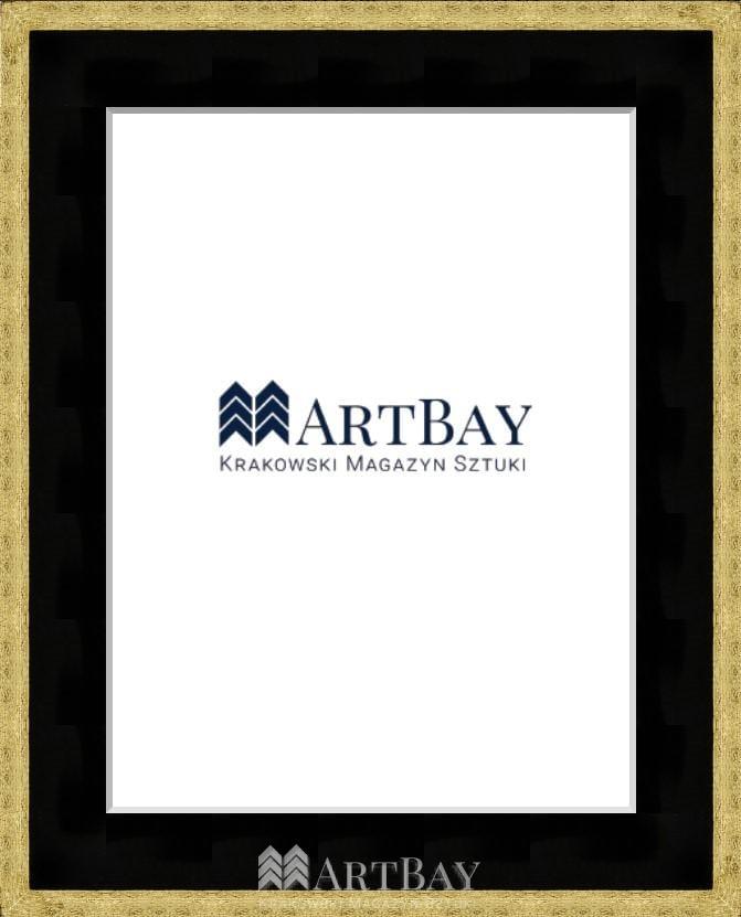 Rama drewniana sosnowa w kolorze czarnym ze złotym rantem. Profil ramy prosty typu „american box”. Obraz oprawiony w ramę tego typu nie ma zasłoniętych boków a pomiędzy ramą a obrazem tworzy się pusta przestrzeń – margines szerokości od około 5 mm do 20 mm (do wyboru). Wysokość ramy 40 mm, szerokość zależna od oprawy. Rama przeznaczona do oprawy obrazów płócien na krośnie, blejtramie . Drewno sosnowe malowane, zdobione na szlagmetal złoty.