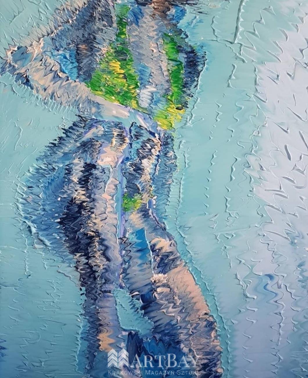 Wyjątkowy obraz przedstawiający kobietę w kostiumie kąpielowym. Obraz namalowany na podobraziu płóciennym, farbami akrylowymi. Obraz ma kolekcjonerski charakter, pasuje do każdego wnętrza – tradycyjnego, nowoczesnego, w szczególności do biura lub salonu albo sypialni.